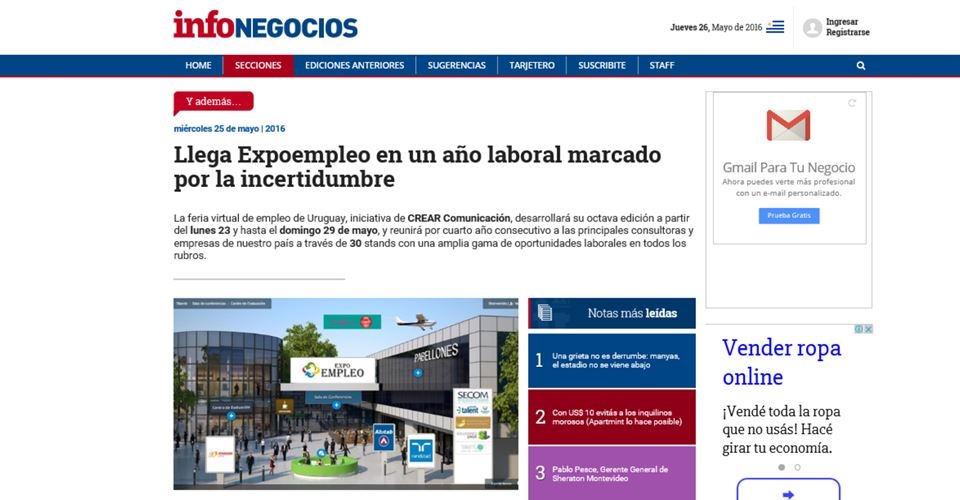Gracias InfoNegocios por ayudarnos a que miles de ejecutivos también utilicen ExpoEmpleo para encontrar una oportunidad de mejora de su carrera profesional